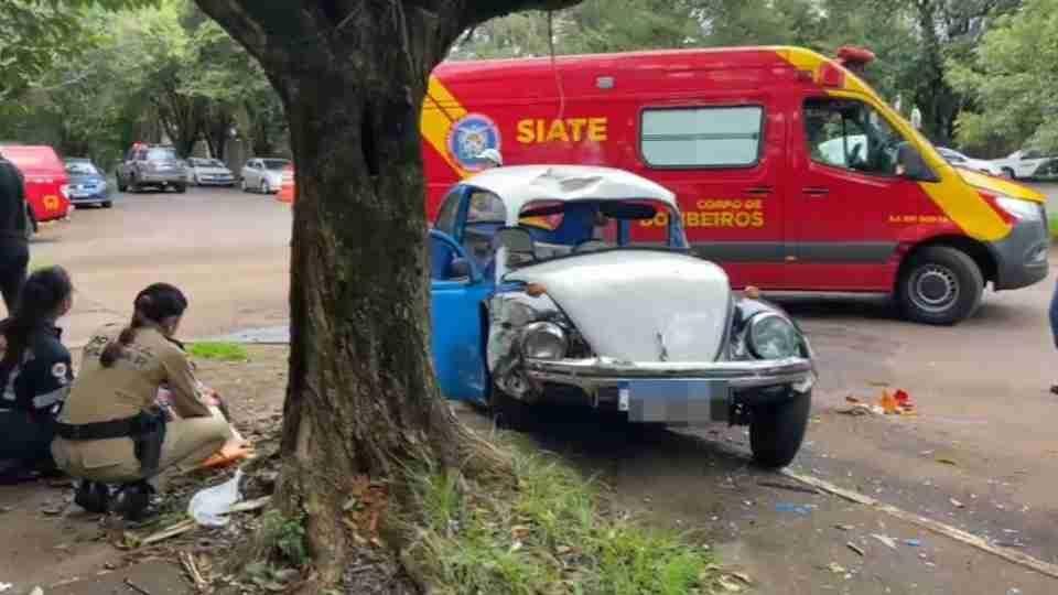 Égua da Polícia Militar foge e causa acidente com Fusca no Centro de Cascavel