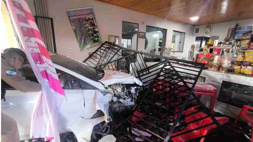 Motociclista tem perna amputada após ser arrastado por 40 metros por carro e parar dentro de mercearia em Cascavel