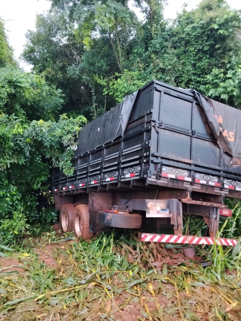 Segundo o relato, o veículo acabou adentrando uma lavoura na região da Linha Sanga Funda, nas proximidades da Coamo. O motorista teria abandonado o caminhão no local e fugido a pé.