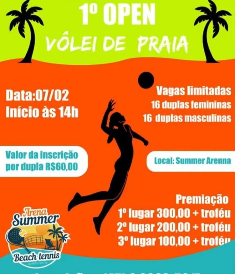 No último sábado, dia 7 de fevereiro, foi realizado o 1º Open de Vôlei de Praia, evento esportivo que integrou a programação de verão do município e reuniu atletas locais e regionais em uma tarde de competição e integração.