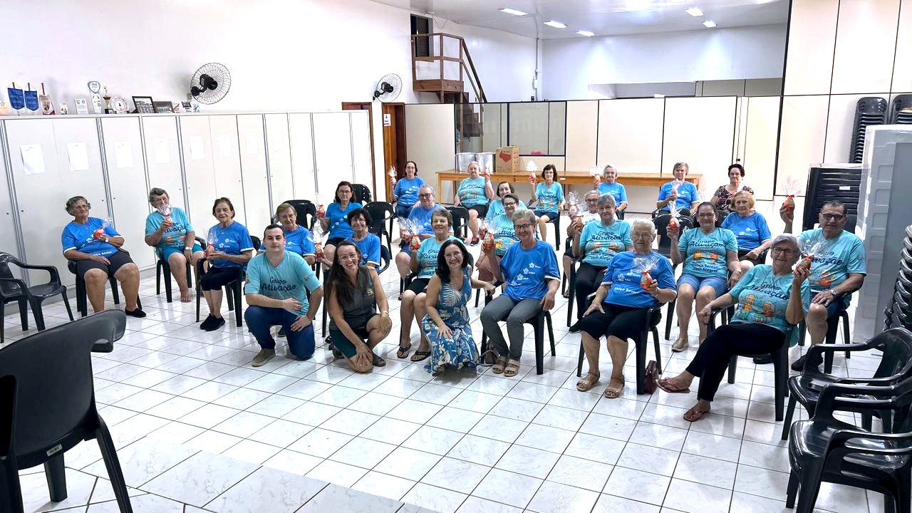 Durante o encontro, foram entregues ovos de chocolate acompanhados de mensagens, em uma iniciativa voltada à valorização dos idosos e ao fortalecimento dos vínculos comunitários.