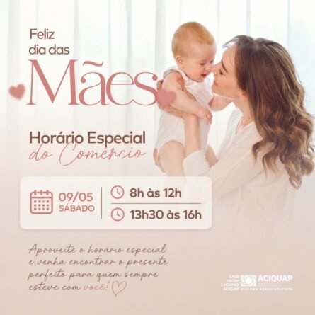 A ACIQUAP divulgou o horário especial de atendimento do comércio de Quatro Pontes para o período que antecede o Dia das Mães, uma das datas mais importantes para o varejo ao longo do ano.