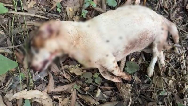 Horas depois, o suspeito teria ido até uma área de mata. Após ele deixar o local, os moradores encontraram o cachorro já sem vida, enrolado em um uniforme de uma empresa da cidade e com diversos ferimentos, incluindo uma perfuração nas costas que pode ter sido causada por disparo de arma de fogo.