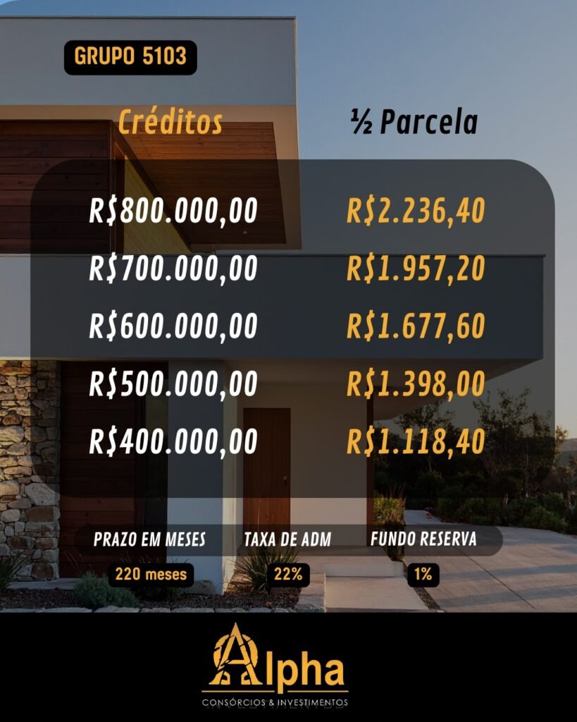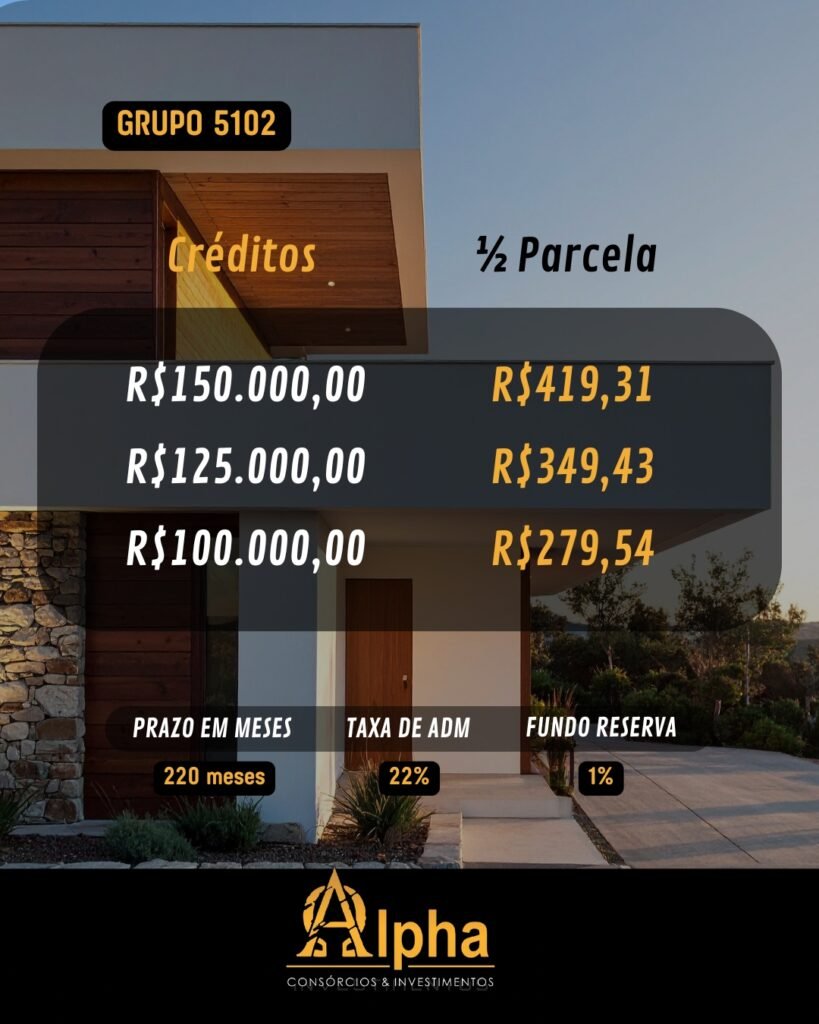 Com créditos a partir de R$ 50 mil para veículo, e R$100 mil para imóvel, os planos são estruturados para atender diferentes perfis de clientes, permitindo organização financeira sem comprometer o orçamento mensal.