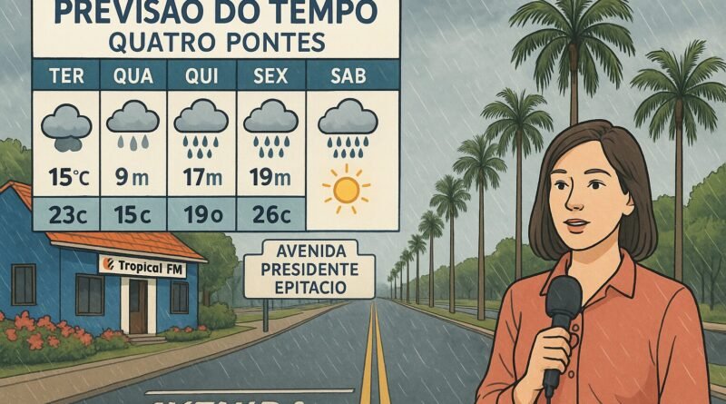 Ler MaisA terça-feira (7) amanheceu nublada em Quatro Pontes, com clima ameno e temperaturas variando entre 16 e 24 graus. De