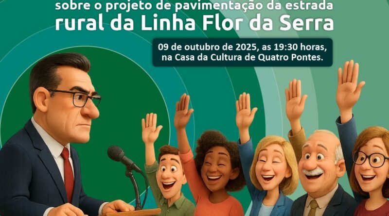 Prefeitura de Quatro Pontes realizará audiência pública sobre pavimentação da estrada rural da Linha Flor da Serra