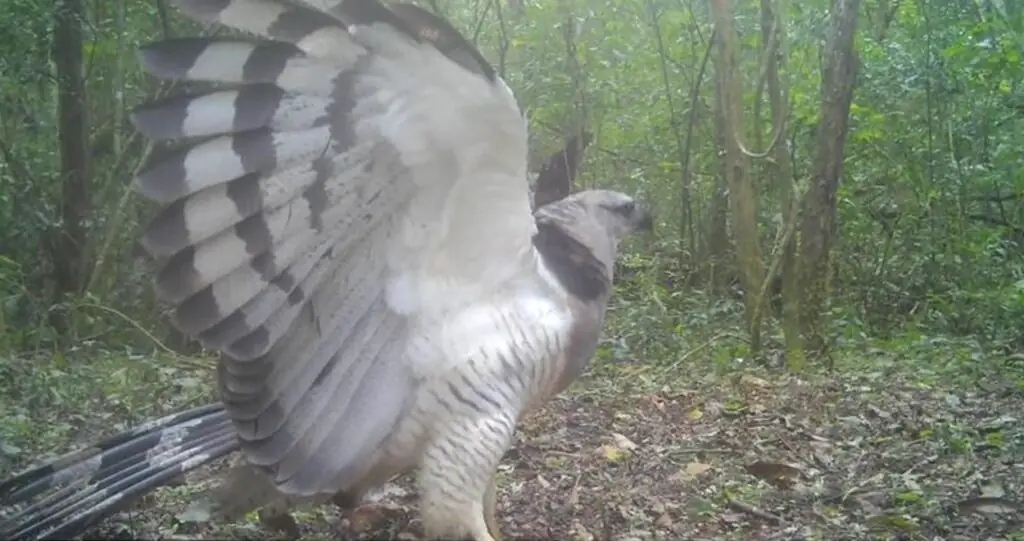 A ave foi filmada ao descer no chão da floresta e surpreendeu a equipe que atua no projeto. Os registros da espécie não são comuns, especialmente no Sul do país.