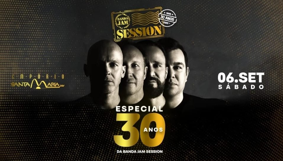 A Banda Jam Session, ícone da cena musical de Toledo e região, completa 30 anos de estrada e vai comemorar a data com um espetáculo especial no próximo dia 6 de setembro, no Empório Santa Maria. A apresentação marcará a gravação do DVD “Acústico 2: Jam Session”, registrando em vídeo um momento histórico para o grupo e seus fãs. O Show conta com patrocínio master da Cervejaria Colônia e Avatim