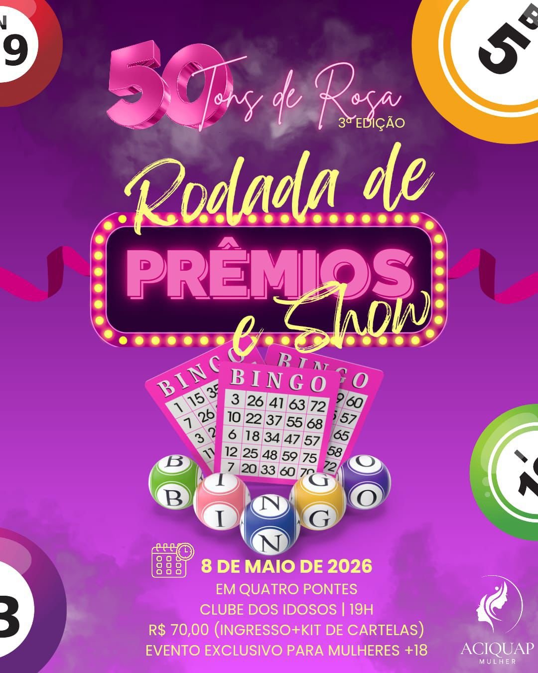 Mais do que a premiação, o evento tem um propósito nobre: todo o lucro arrecadado será destinado integralmente ao apoio de pessoas com câncer em Quatro Pontes, reforçando o compromisso social da ACIQUAP Mulher com a comunidade.