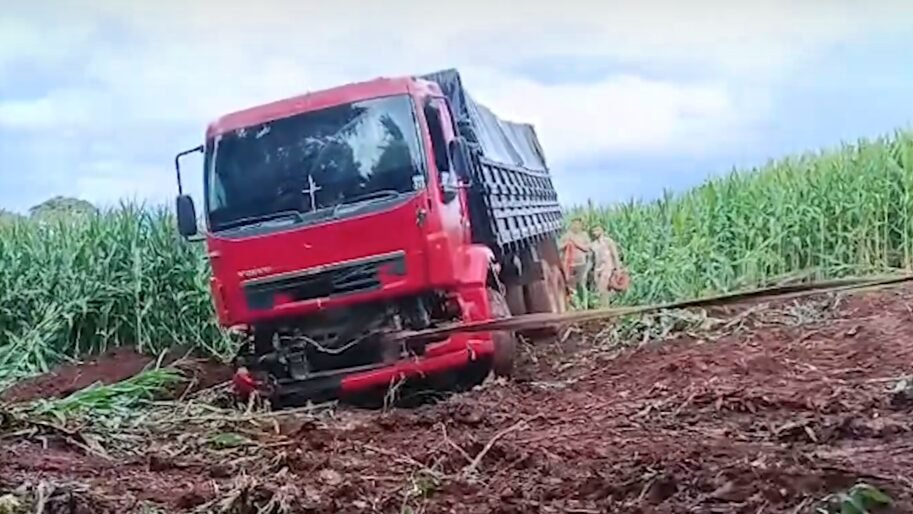 Segundo a Polícia Militar, equipes chegaram a tentar a retirada do caminhão ainda no domingo, com apoio de produtores rurais da região, porém o solo encharcado e a chuva constante impediram o sucesso da operação.