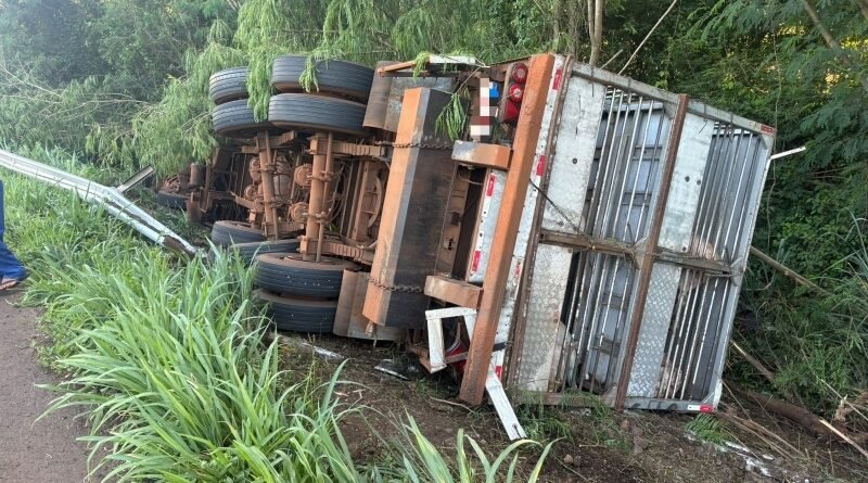 Uma carreta carregada com porcos tombou no final da tarde desta terça-feira (20), na BR-163, trecho entre Guaíra e Mercedes.