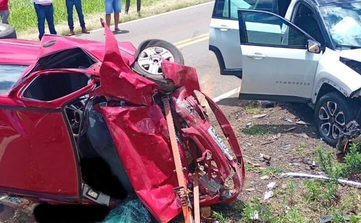 A colisão envolveu dois veículos, um Jeep Commander com placa de Belo Horizonte, Minas Gerais, e um Celta, com placa de Enéas Marques.