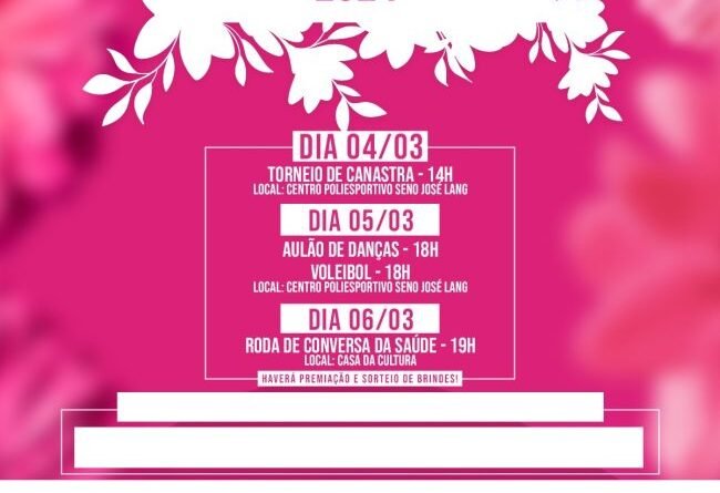 Ler MaisInicia nesta segunda-feira (04) a programação da Semana da Mulher 2024 de Quatro Pontes, organizada pelas Secretarias de Cultura e