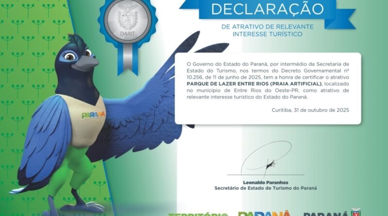 Ler MaisO município de Entre Rios do Oeste recebeu uma importante conquista: a Classificação Prata de Atrativo de Relevante Interesse Turístico,