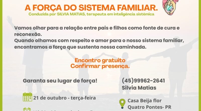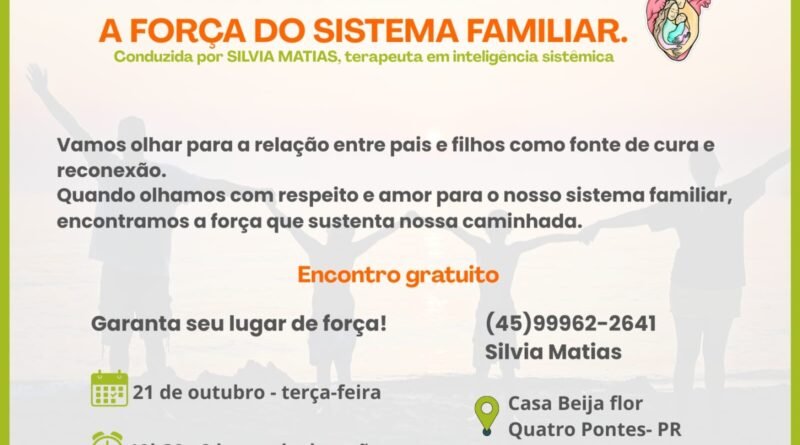 Ler MaisA Casa Beija-Flor, em Quatro Pontes, recebe na noite desta terça-feira, dia 21 de outubro, a vivência “Pais e Filhos