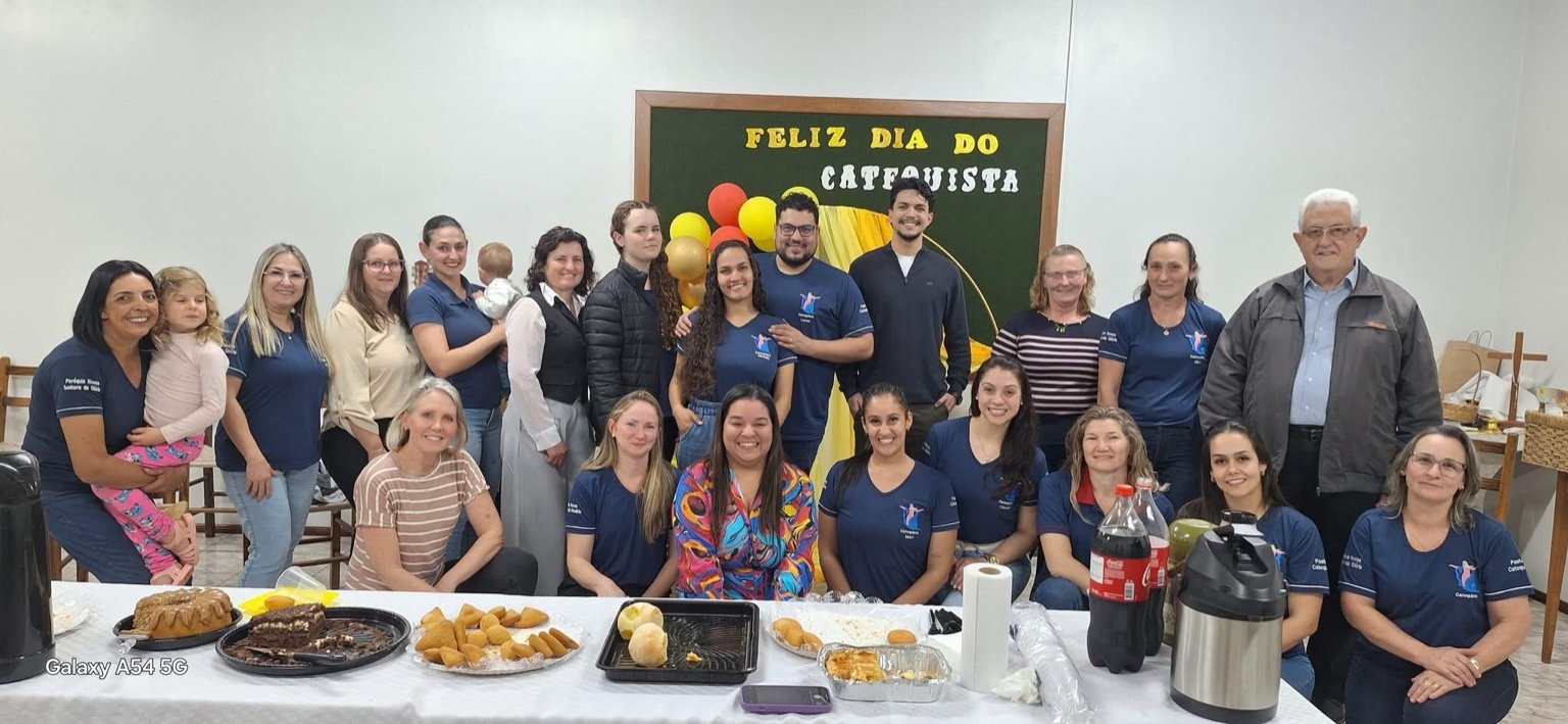 A confraternização contou com a presença dos catequistas da paróquia, que celebraram a data com alegria, união e espírito de comunidade.