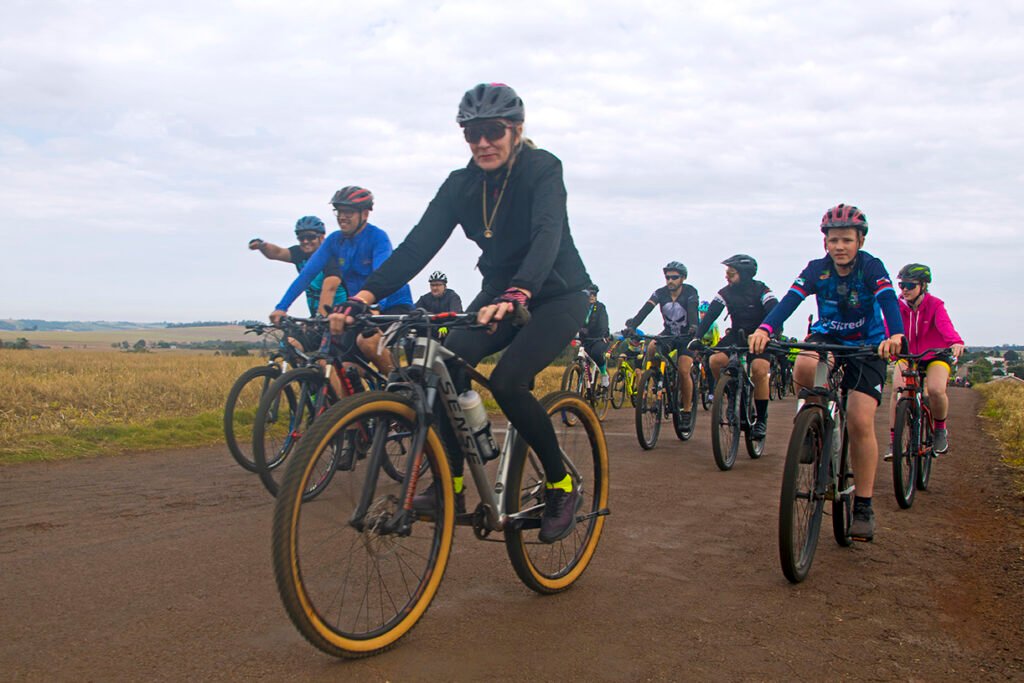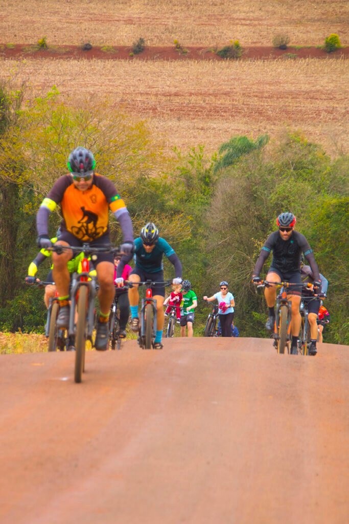Foram oferecidos três trajetos – 12 km, 20 km e 33 km – todos bem sinalizados e interligados, passando pela Linha São José e convergindo para o ponto de apoio principal, na propriedade da família Lunkes, que se tornou um verdadeiro palco de confraternização. Lá, os participantes encontraram água, frutas, chope e música, além de um ambiente animado que rendeu muitas fotos, dança e alegria.