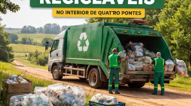 O Departamento de Meio Ambiente de Quatro Pontes realiza nesta quarta-feira, dia 4, mais uma etapa da coleta de materiais recicláveis no interior do município. A ação contempla a Linha Flor da Serra e também as localidades vizinhas.