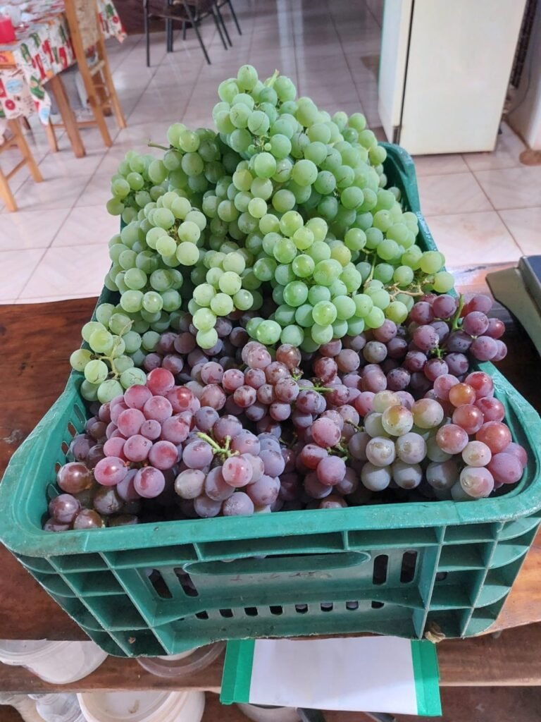 A colheita segue enquanto houver produção disponível, e os interessados são orientados a entrar em contato antecipadamente pelo WhatsApp para garantir sua encomenda e aproveitar a qualidade das uvas orgânicas produzidas no município.