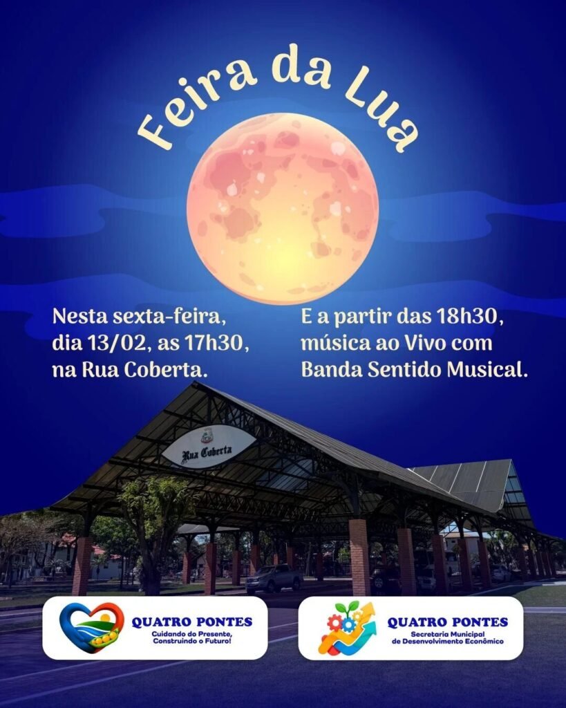 A Rua Coberta de Quatro Pontes será palco, nesta sexta-feira (13), de mais uma edição da tradicional Feira da Lua.