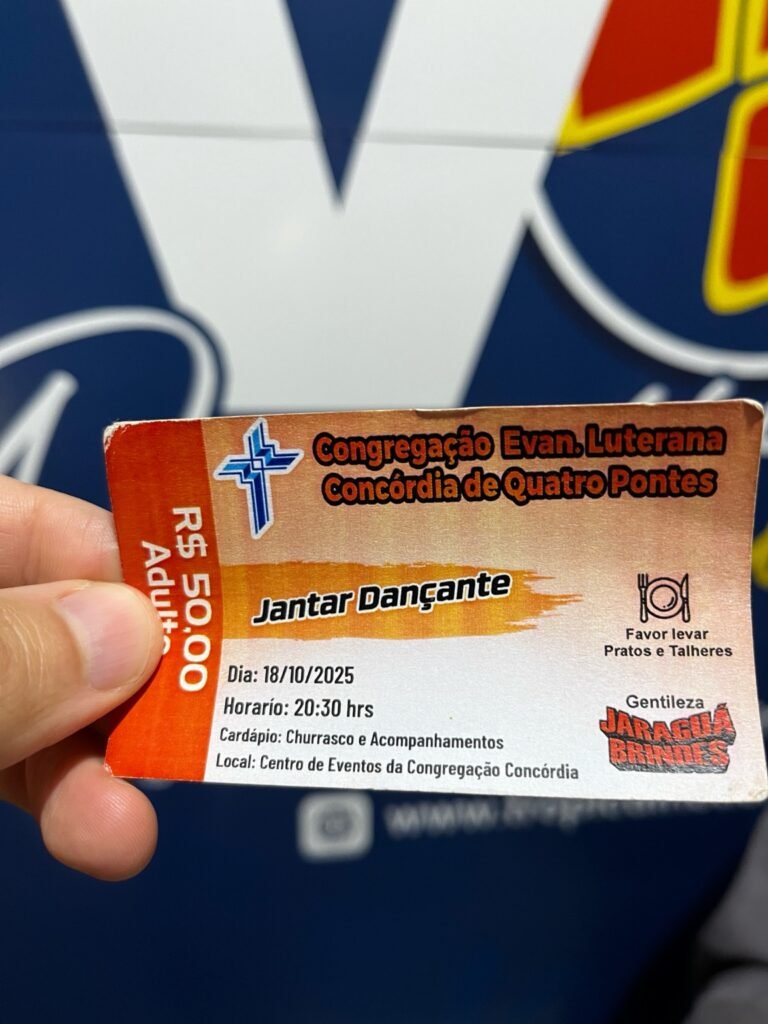 A Congregação Evangélica Luterana Concórdia de Quatro Pontes promoverá, no próximo sábado, dia 18 de outubro, o tradicional Jantar Dançante, a partir das 20h30, no Centro de Eventos da Congregação Concórdia.