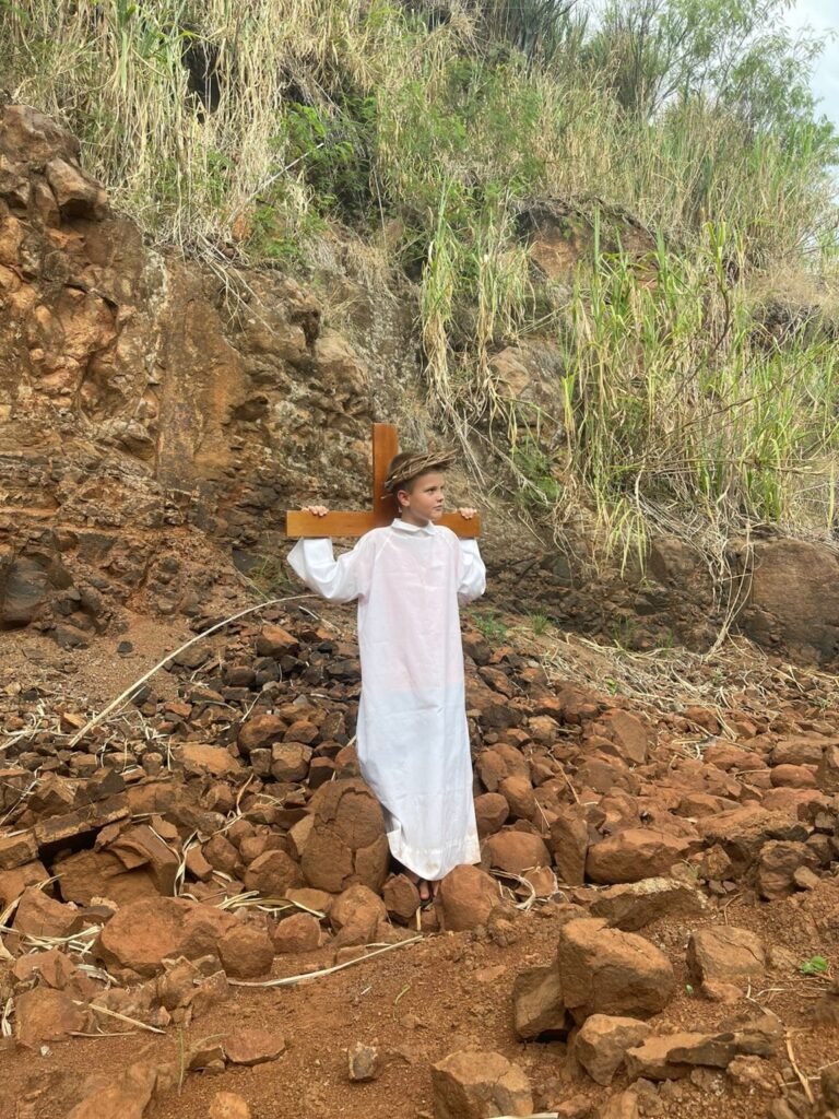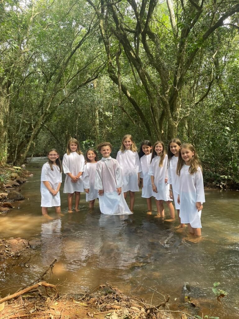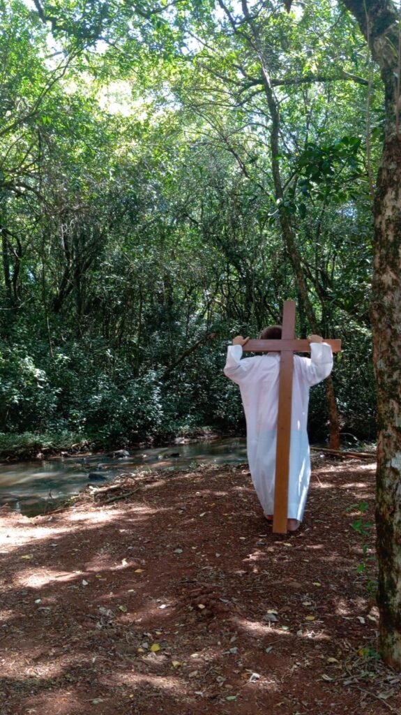 A atividade contou com uma dinâmica lúdica e educativa, onde as crianças participaram de uma encenação representando a paixão, morte e ressurreição de Cristo. Vestidas com trajes simbólicos e com falas preparadas, elas puderam vivenciar, de forma simples e profunda, uma das passagens mais importantes da fé cristã.
