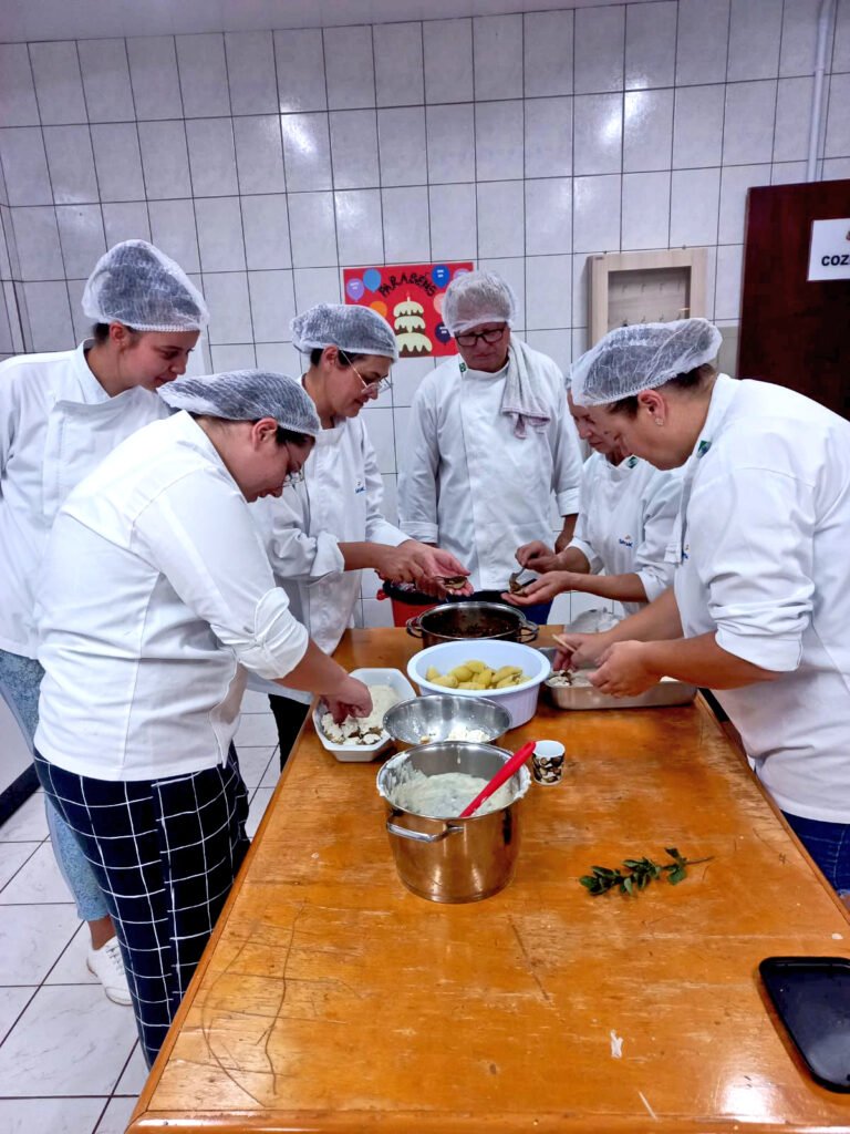 Durante a formação, os participantes tiveram acesso a conteúdos introdutórios da área gastronômica, com ênfase no desenvolvimento de habilidades práticas e no aprimoramento de técnicas básicas de cozinha.