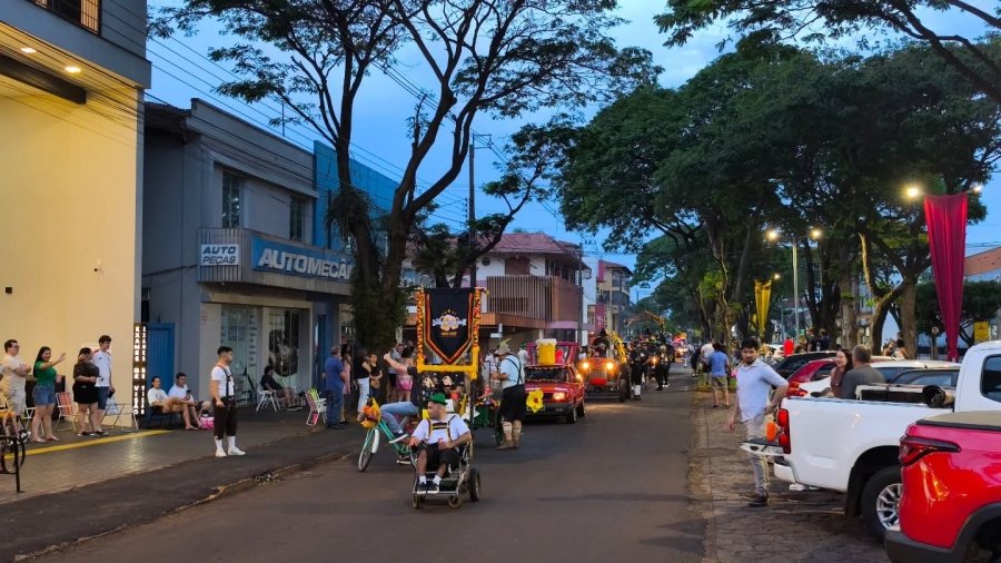 Os grupos realmente se empenharam na ornamentação dos carros alegóricos e deram um show no desfile deste sábado, dia 25. A abertura foi feita pelas autoridades e pelo bloco da prefeitura. Cerca de 60 carros alegóricos passaram pela avenida Maripá, seguindo até o parque de exposições.
