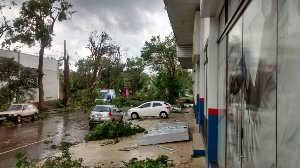 “Quebrou vidros, placas foram levadas e várias árvores foram arrancadas. O vento durou bastante, mas quando o tornado tocou o solo foi o pior momento”, relembra.