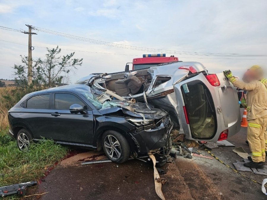 Um acidente gravíssimo foi registrado na tarde desta segunda-feira (15) na rodovia BR-163, na saída de Toledo para Cascavel-PR. A colisão envolveu uma Hyundai Santa Fé, de cor  prata e um Honda HR-V, preto, resultando na morte de duas pessoas.