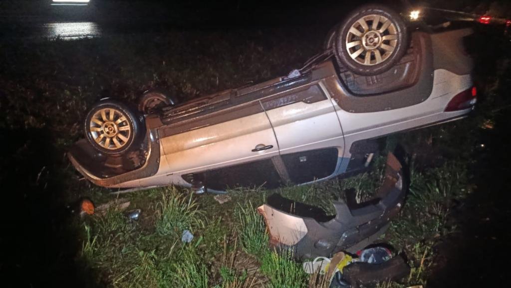 Um acidente de trânsito aconteceu na noite desta quinta-feira (16) na BR-163, em Toledo. O capotamento acorreu no trecho que liga o município a Cascavel, nas imediações da ponte sobre o Rio Lopeí, e envolveu um Fiat Strada com placas de Cascavel.