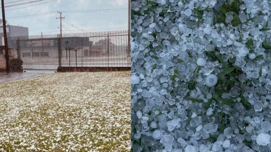 Um intenso temporal com queda de granizo atingiu Colombo, na Região Metropolitana de Curitiba (RMC), na tarde deste sábado (22). Segundo um balanço preliminar divulgado pela Prefeitura, cerca de 50 imóveis sofreram danos devido às pedras de gelo, que também se acumularam em ruas e quintais da cidade.