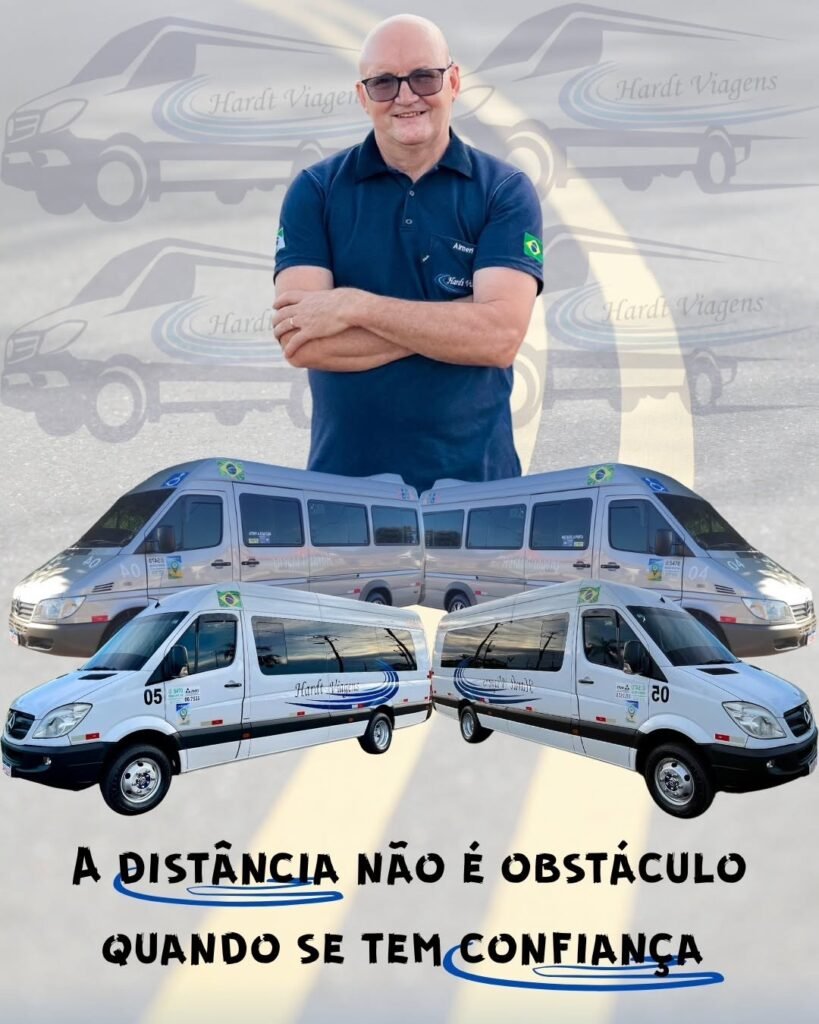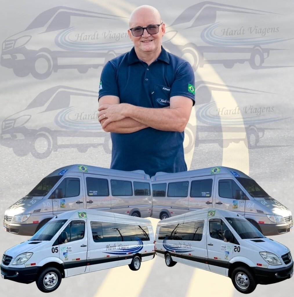 Dois anos depois, diante da crescente demanda, veio a compra do segundo veículo. Logo na sequência, a pandemia trouxe um dos períodos mais difíceis da história da empresa. “Tudo parou”, recorda Almeri. Mesmo com as dificuldades, a família decidiu seguir em frente. Com a retomada gradual das atividades, a Hardt Viagens foi se reestruturando, investindo na melhoria do atendimento e no conforto dos passageiros.