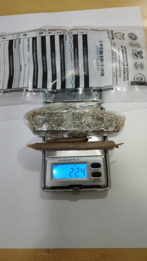 Durant patrulhamento, uma equipe policial abordou um veículo que estava estacionado, onde encontraram um indivíduo em atitude suspeita. Durante a busca pessoal e no carro, os policiais localizaram 22,4 gramas de maconha.