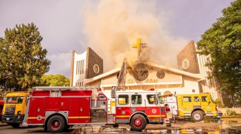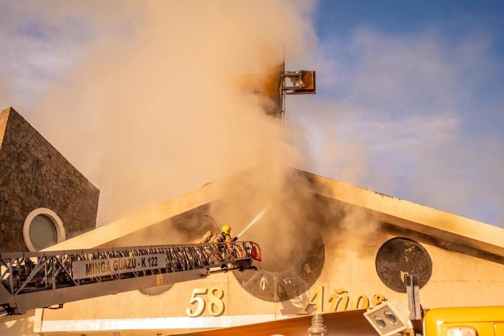 Incêndio atinge Catedral de San Blas e telhado desaba em Ciudad del Este