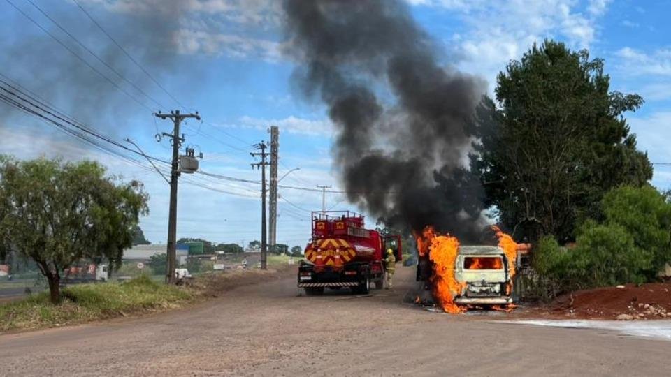 Uma Volkswagen Kombi foi completamente destruída por um incêndio na marginal da BR-467, em Cascavel, na manhã desta quarta-feira (12). A ocorrência foi atendida próximo a um posto de combustíveis, nas proximidades da Ceasa.