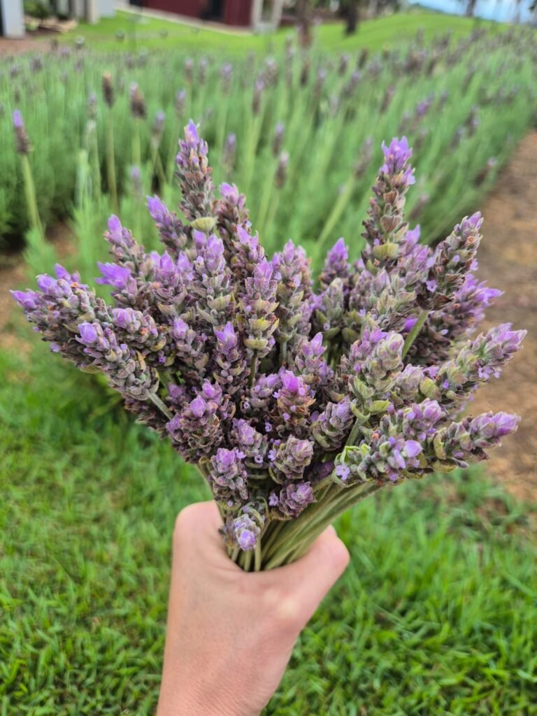 “Esse lavandário é um projeto feito com muito carinho. A ideia é que as pessoas venham com calma, sintam o aroma das lavandas, façam a colheita e levem para casa um pouco dessa experiência com a natureza.”