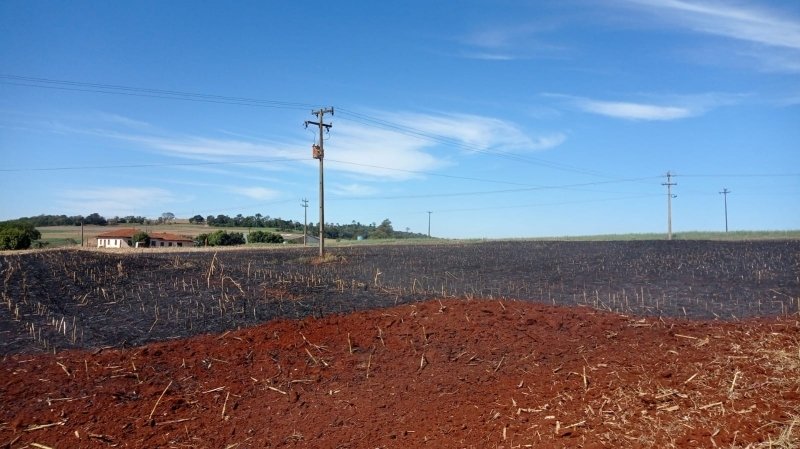 Conforme as informações, o fogo consumiu uma área de palhada de milho.