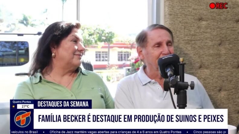 No último sábado, dia 18 de abril, a Rádio Tropical FM recebeu, em seus estúdios, a família Becker, reconhecida na região pela forte atuação na produção de suínos e peixes. Durante a programação, o destaque foi para o produtor Milton Becker, homenageado pela emissora, ao lado de sua família, pelas conquistas alcançadas ao longo dos anos no setor agropecuário.