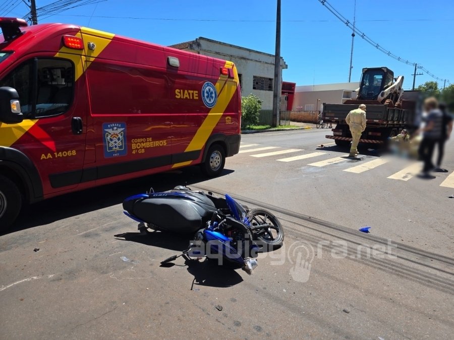 De acordo com informações apuradas pela reportagem do AquiAgora.net, o caminhão seguia pela rua Pernambuco e a moto pela 7 de Setembro, quando houve a violenta colisão.