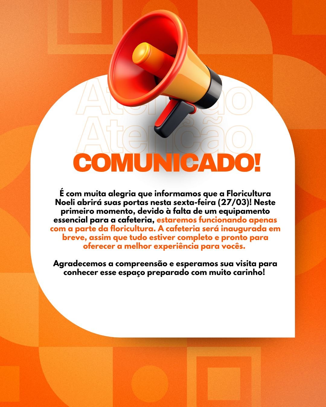Neste primeiro momento, o atendimento será voltado exclusivamente à floricultura. A parte da cafeteria ainda está em fase final de preparação e não estará funcionando nesta abertura inicial. A expectativa é de que, em breve, o espaço passe a oferecer saborosos cafés, tortas e salgados, ampliando a experiência para o público.