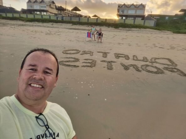 Entre o mar, a areia e o pôr do sol do litoral catarinense, uma imagem curiosa chama a atenção: o nome “Quatro Pontes” escrito na areia da praia. O registro foi enviado ao departamento de jornalismo da Tropical Fm na manhã desta segunda (16) durante um momento de descanso do empreendedor Evandro Zelenski, que neste mês de março aproveita alguns dias de férias em Santa Catarina.