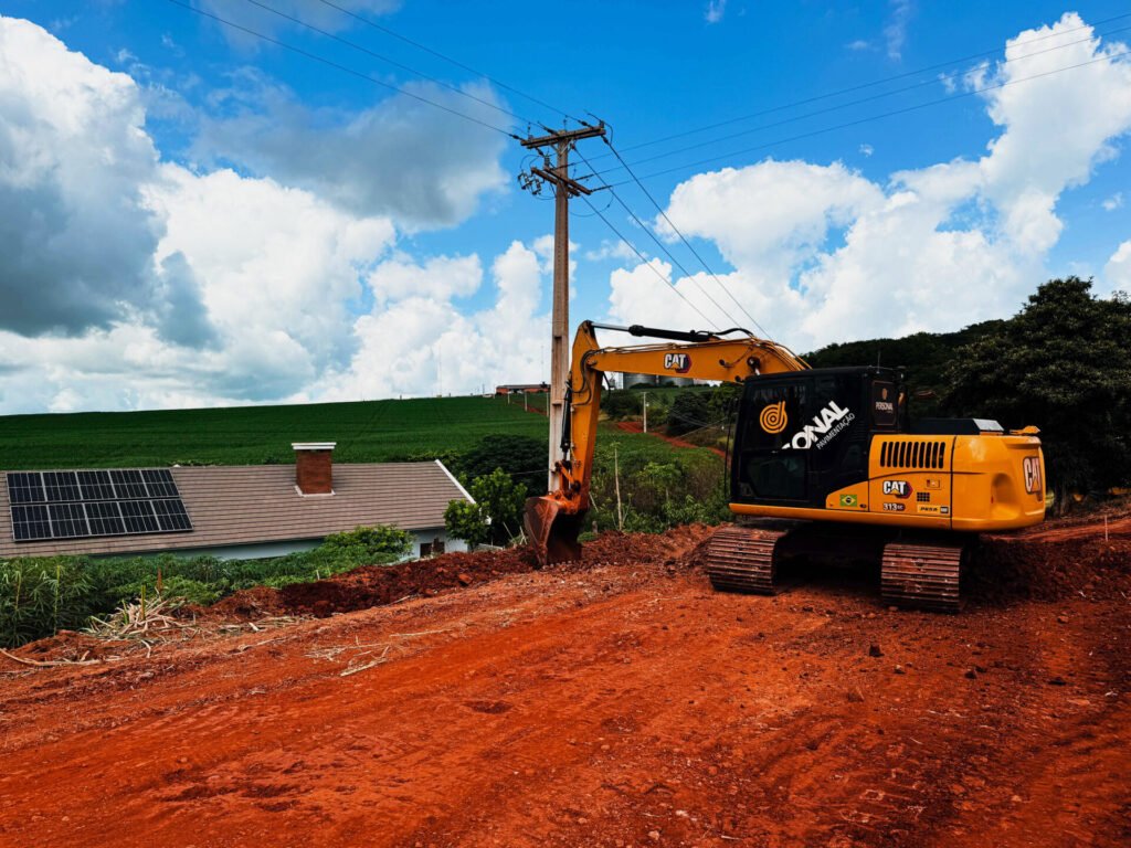Essa etapa da obra tem como objetivo preparar e nivelar o solo da estrada para as próximas fases da pavimentação. Após a conclusão da terraplanagem, serão executadas a base e a sub-base da via, compostas por camadas de pedras que antecedem a aplicação da massa asfáltica.