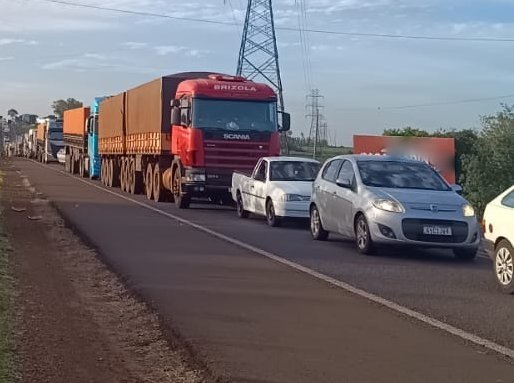 Obras na BR-163 em Mundo Novo (MS) causa filas no trânsito em Guaíra (PR)