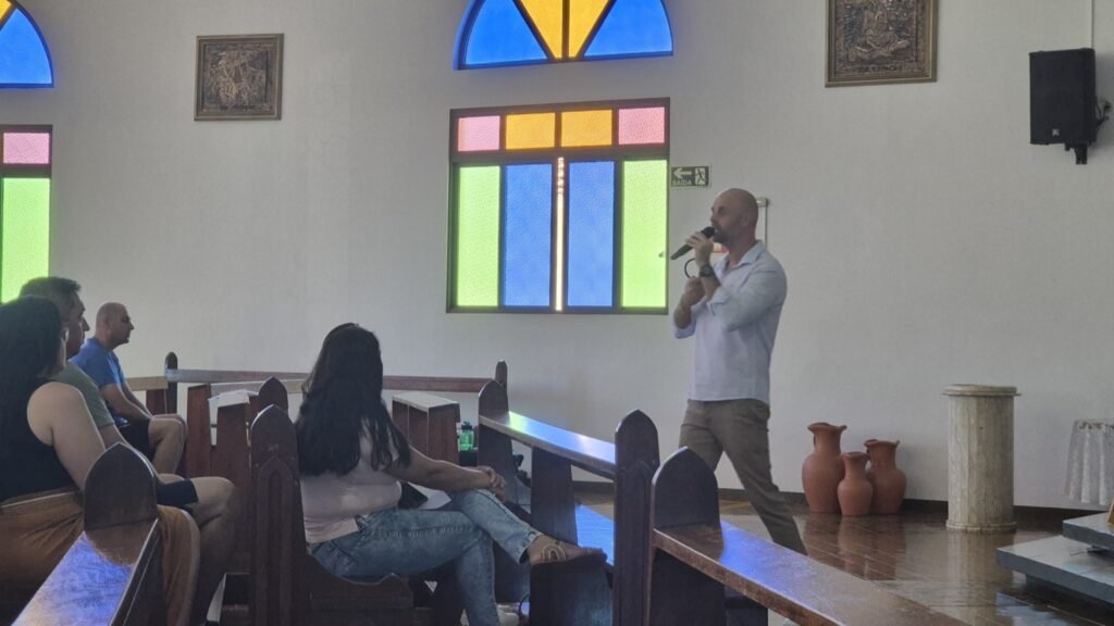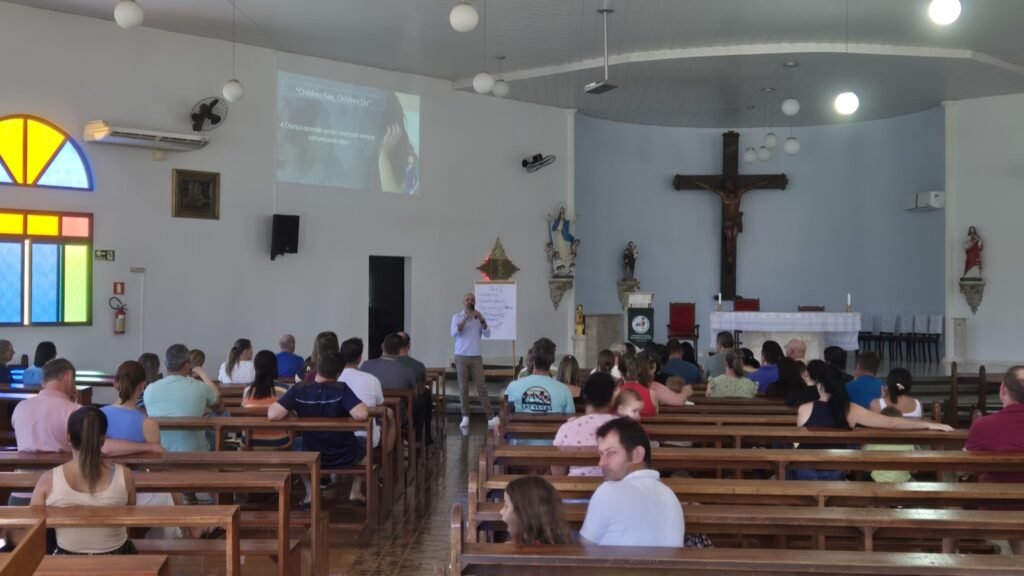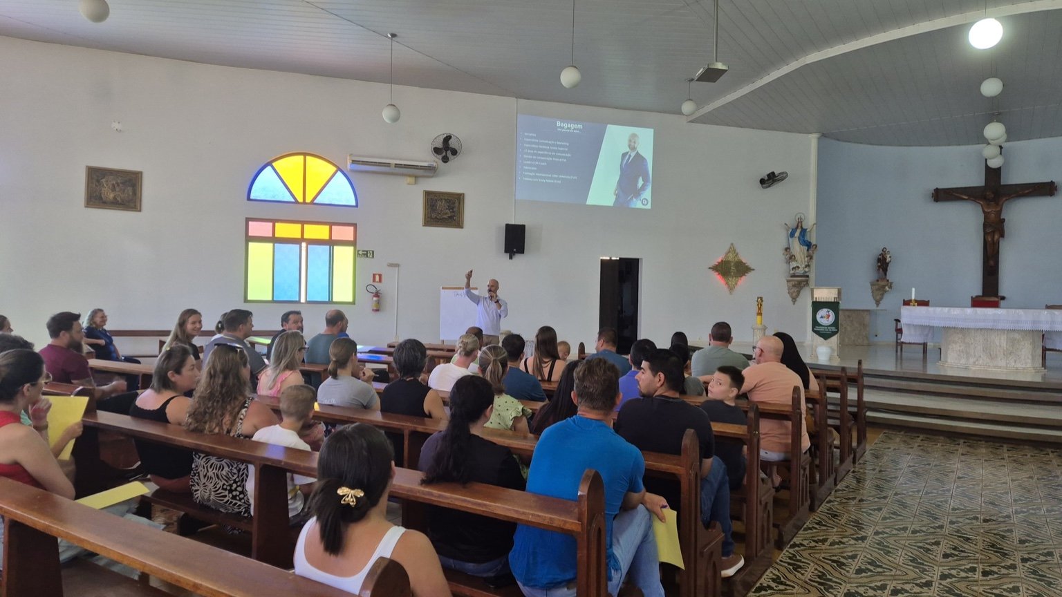 Entre os destaques da programação esteve a palestra conduzida pelo coach, comunicador e palestrante Diego Francener, convidado pela coordenação da catequese para abordar a importância da presença dos pais na formação emocional, espiritual e comportamental dos filhos. Durante a fala, Diego reforçou que “tudo na vida comunica”, ressaltando que a educação acontece não apenas pelas palavras, mas principalmente pelo exemplo diário.