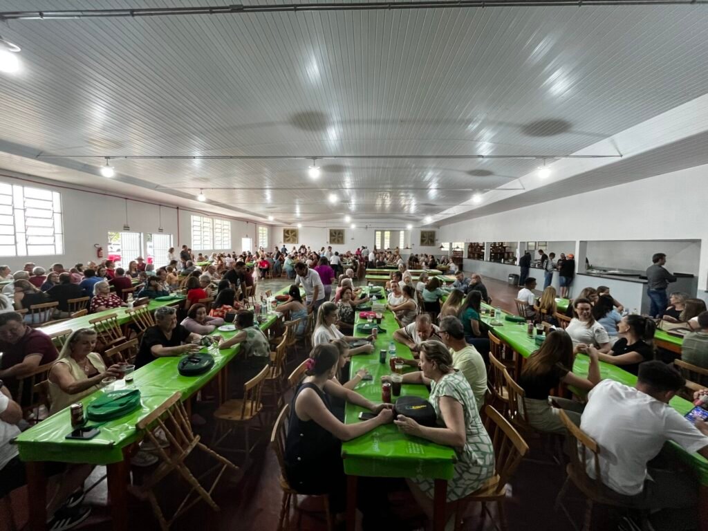 As comemorações começaram às 9 horas da manhã com a Santa Missa, presidida pelo padre Solano, em um clima de emoção e reverência. Ao meio-dia, foi servido um delicioso almoço no Salão Paroquial, com aproximadamente 320 fichas comercializadas, demonstrando a grande participação da comunidade.