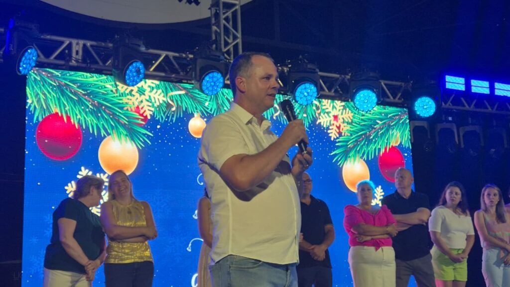 Durante a abertura oficial da programação natalina de Quatro Pontes, o prefeito Cesar Seidel (Canela) revelou importantes novidades para o município. Em entrevista concedida à Rádio Tropical FM no local do evento, ele falou sobre a emocionante noite de festividades, marcada pela iluminação da Rua Coberta e da praça principal, que encantou o público e deu início ao clima natalino na cidade.