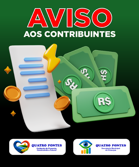 A Prefeitura Municipal de Quatro Pontes, por meio da Secretaria de Finanças e do Departamento de Tributação, Cadastro e Fiscalização, informa aos contribuintes que o prazo para regularização de débitos municipais se encerra no dia 30 de novembro de 2025.