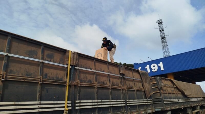 PRF flagra carreta carregada com milho transportando cerca de 400 caixas de cigarros contrabandeados em Cascavel