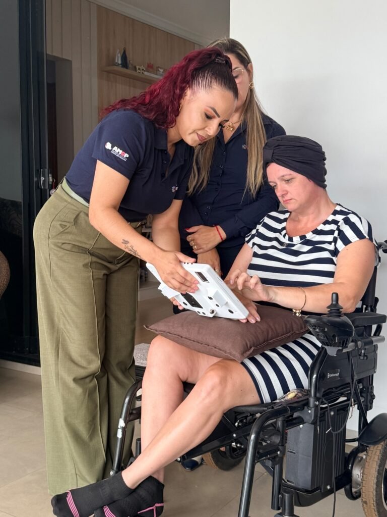 Com o equipamento, Sabrina passa a contar com mais autonomia e possibilidades de comunicação, ampliando sua participação na rotina familiar e social, com impacto direto em sua qualidade de vida.
